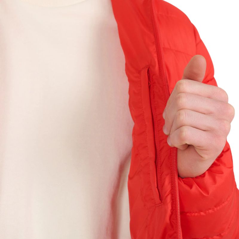 Gefüllt mit 100 % recycelten synthetischen Daunen bietet es auch bei feuchten Bedingungen ausreichende Isolierung. Normale Passform – bequeme Passform ohne Bewegungseinschränkung. Standard-Hüftlänge – universeller Stil für den Alltag.