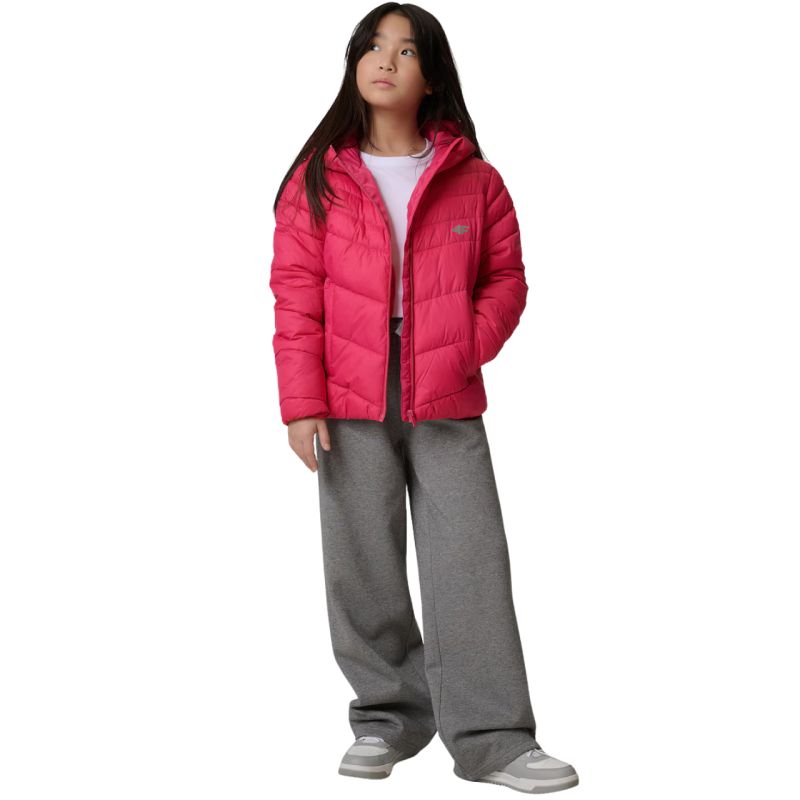 4F F0739 Fuchsia Jacke für Mädchen 4FJWSS26TDJAF0739 55S. Diese leichte 4F-Jacke für Mädchen ist ideal für die Übergangszeit und bietet dank 4FWarm-Technologie angenehmen Wärmekomfort an kühleren Tagen. Die synthetische Füllung sorgt für hervorragende Isolation, während eine wasserabweisende Beschichtung die Feuchtigkeitsaufnahme reduziert. Die Jacke verfügt über eine Kapuze, einen Reißverschluss und praktische Taschen. Der normale Schnitt, der bis zur Hüfte reicht, garantiert Komfort und Bewegungsfreiheit im Alltag. Technische Daten: · Material: 100 % Polyamid · Futter: 100 % Polyester · Füllung: 100 % Polyester · 4FWarm-Technologie – für optimalen Wärmekomfort · Synthetische Füllung – wärmt angenehm, ohne zu beschweren · Wasserabweisende Imprägnierung – reduziert die Wasseraufnahme · Integrierte Kapuze – schützt den Kopf bei Wind · Reißverschlusstaschen – bieten sicheren Stauraum für Kleinigkeiten · Glattes Futter – erleichtert das Anziehen über anderen Kleidungsstücken · Normaler Schnitt bis zur Hüfte – für bequemen Tragekomfort im Alltag