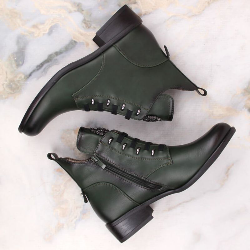 Jezzi W JEZ412B isolierte flache Stiefeletten, grün
