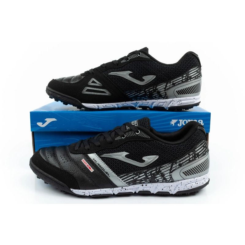 Der Joma Mundial Turf 2601 Black MUNS2601TF Herren-Fußballschuh ermöglicht ambitionierten Spielern im Training maximale Beschleunigung auf Kunstrasen. Das Obermaterial besteht aus echtem Leder. Klassische Schnürung. Mesh-Einsätze. Das VTS-Belüftungssystem sorgt für Temperaturregulierung und optimale Luftzirkulation. Die Zehenkappe mit Protection-Mikrofaserverstärkung absorbiert den Aufprall des Balls, verbessert die Ballkontrolle und erhöht die Abriebfestigkeit. Die segmentierte Phylon-Schaum-Mittelsohle gewährleistet natürliche Bewegungsabläufe. Die Außensohle mit Gummistollen reduziert den Fußdruck und bietet stabilen Halt. Die Durability-Technologie sorgt für erhöhte Abriebfestigkeit.