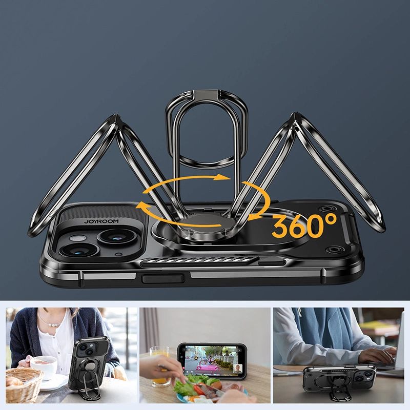 Joyroom Dual Hinge Case für iPhone 14 gepanzerte Hülle mit Ständer und Ringhalter schwarz