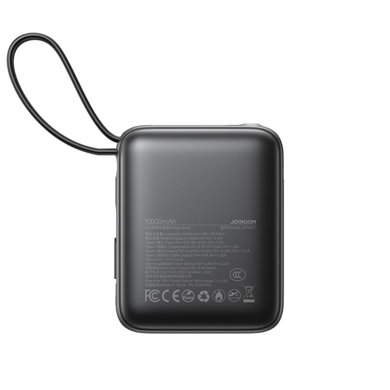 Joyroom JR-PBF27 10000 mAh 22,5 W Powerbank mit integrierten USB-C- und Lightning Kabeln – Schwarz