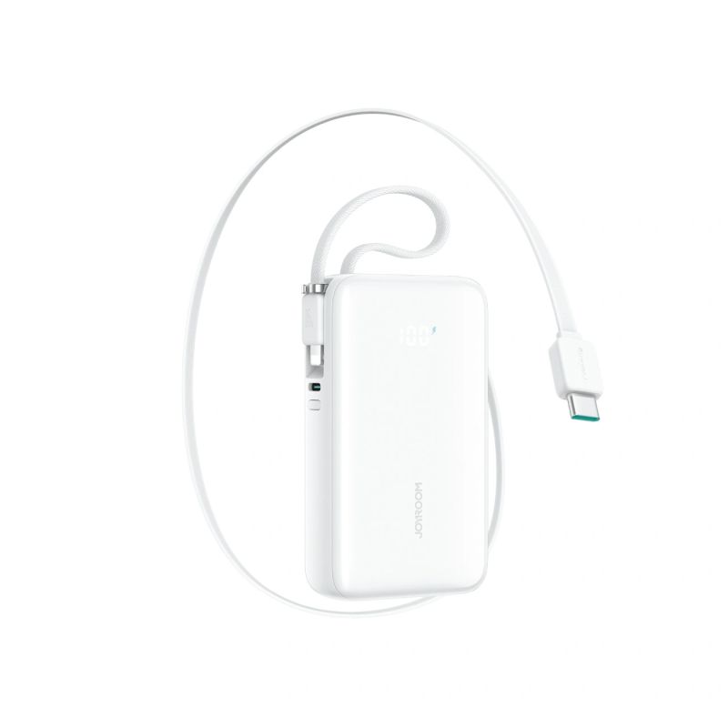 Joyroom JR-PR2L 10000mAh 35W Powerbank mit integriertem, einziehbarem USB-C-Kabel und Lightning Kabel mit Trageschlaufe – Weiß