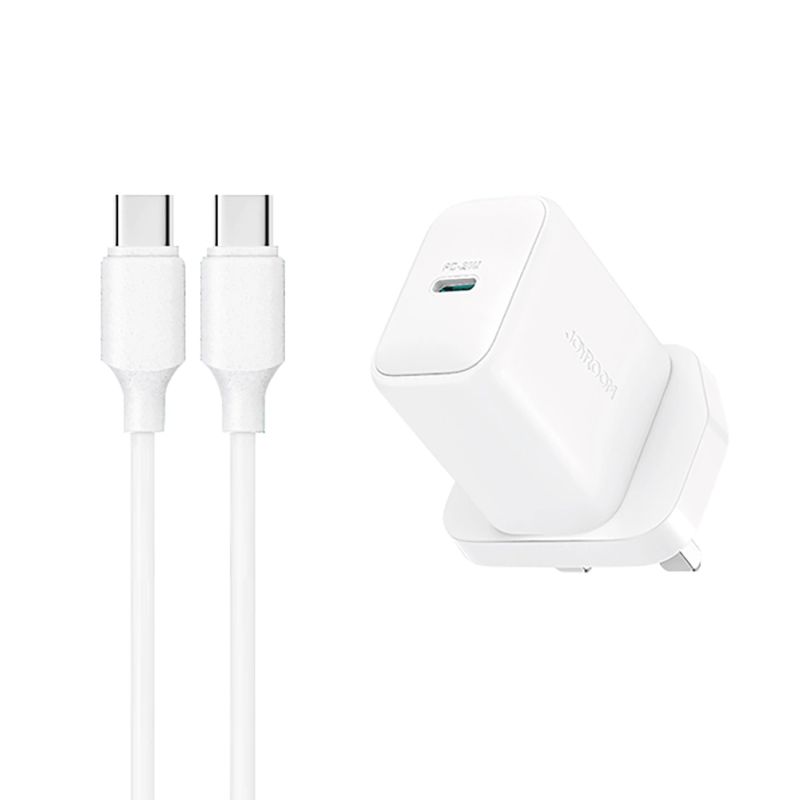 Joyroom JR-TCF20 PD 20W Wandladegerät (UK-Stecker) mit 1 m USB-C-Kabel – Weiß