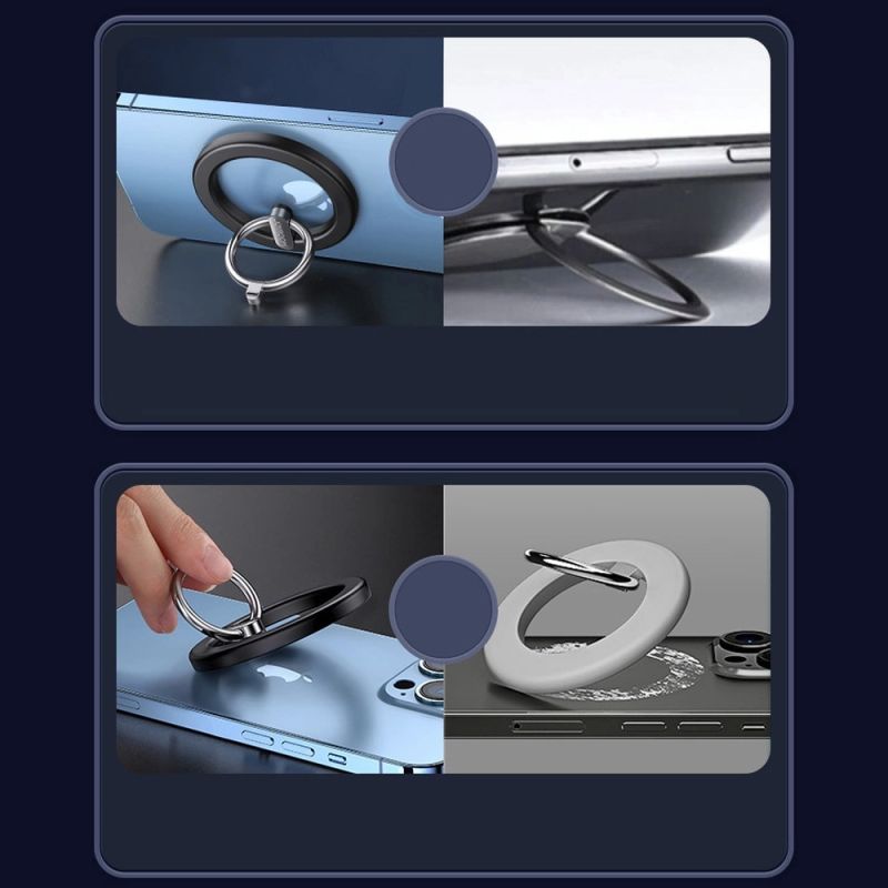 - Aufkleben einer Metallauflage auf das Gehäuse ohne MagSafe-Funktion, dann Anbringen des Rings am Gehäuse mit aufgeklebter Auflage