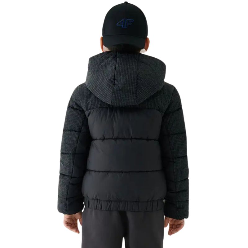 4F M621 Jungen Daunenjacke, Deep Black 4FJWAW25TDJAM621 20S Diese 4F Jacke für Jungen ist perfekt für kühle Tage im Herbst und Winter. Synthetische Daunen in breiten horizontalen Paneelen kombiniert mit der 4FWarm-Technologie garantieren Kälteschutz und Atmungsaktivität. Hydrophobe Materialimprägnierung. Zonale Ripstop-Verstärkungen. Normale Passform. Elastischer Saum. Feste Kapuze mit hohem Kragen integriert. Ein langer Reißverschluss ermöglicht eine individuelle Wärmeregulierung. Zwei Seitentaschen bieten zusätzlichen Stauraum für kleine Gegenstände. Technische Daten: Hauptmaterial: 100 % Polyamid Hauptmaterial 2: 93 % Polyamid, 7 % Polyester Futter: 100 % Polyester Füllung: 100 % Polyester (synthetische Daunen)