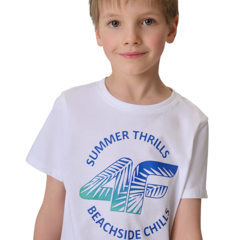 Jungen-T-Shirt 4F M3284 weiß 4FJWSS26TTSHM3284 10S Dieses Jungen-T-Shirt in Größe 4F ist perfekt für den Alltag. Lockere Passform. Weiches Material. Aufdruck auf der Vorderseite. Material: 100 % Baumwolle