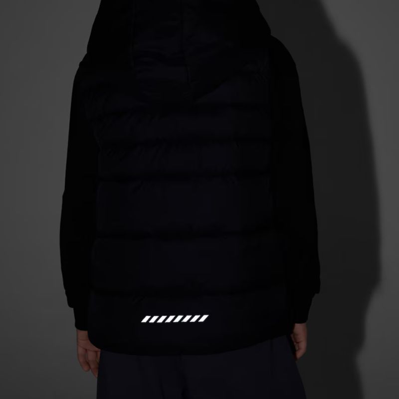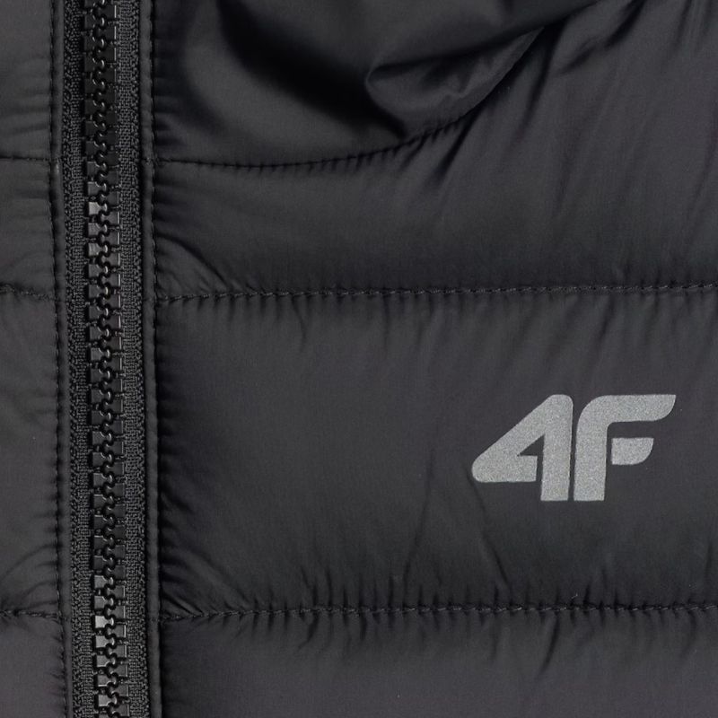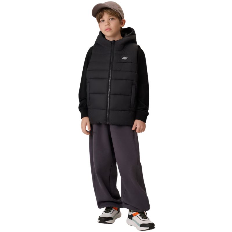 Jungenweste 4F M313 Tiefschwarz 4FJWSS26TVJAM313 20S Die Jungenweste 4F ist eine praktische Isolierschicht, die sich perfekt für den Alltag eignet. Technische Daten: Hauptmaterial: 100 % Polyamid, Futter: 100 % Polyester, Füllung: 100 % Polyester. 4FWarm-Technologie – sorgt für angenehmen Wärmekomfort. Hydrophobe Imprägnierung – reduziert die Wasseraufnahme und schützt vor Nässe. Leichte Synthetikisolierung – wärmt ohne zu beschweren und ist pflegeleicht. Symmetrische Steppung verteilt die Isolierung gleichmäßig und erhöht den Tragekomfort. Kapuze und Stehkragen – schützen vor Kälte und erhöhen den Komfort an windigen Tagen. Reißverschluss mit innenliegender Falte – hält die Wärme im Inneren. Zwei offene Taschen – bieten sicheren Platz für Kleinigkeiten. Normaler Schnitt – sitzt bequem am Körper und schränkt die Bewegungsfreiheit nicht ein.