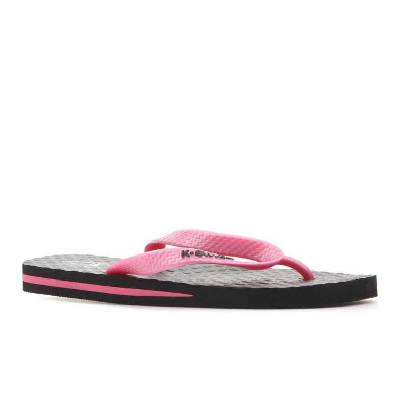K-Swiss Zorrie 02601-065-M Damen-Flip-Flops. Sie zeichnen sich durch Schlichtheit und Komfort aus. Die flache Sohle aus hartem, abriebfestem Gummi sorgt für gute Stabilität. Diese Schuhe eignen sich perfekt für den Pool, den Strand oder nach dem Training.