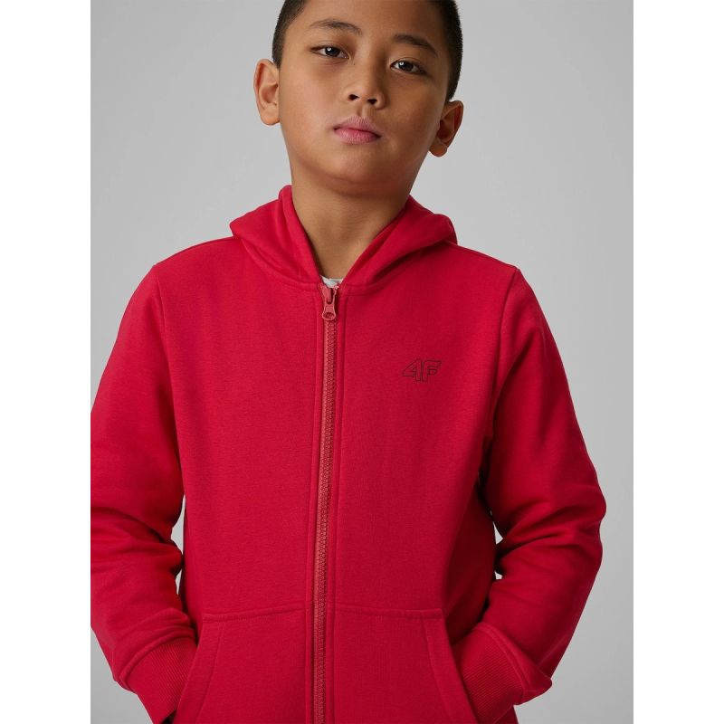 Die integrierte Kapuze bietet optimalen Kälteschutz, während die normale Passform sich bequem an den Körper anschmiegt, ohne die Bewegungsfreiheit einzuschränken. Dank der Standardlänge bis zur Hüfte eignet sich das Sweatshirt perfekt für den Alltag, und der Reißverschluss ermöglicht schnelles An- und Ausziehen. Offene Taschen erhöhen die Funktionalität des Modells, und in den Kinderkollektionen von 4F ist es eine praktische Option für Jungen, die Wert auf Komfort und einen lässigen Stil legen.