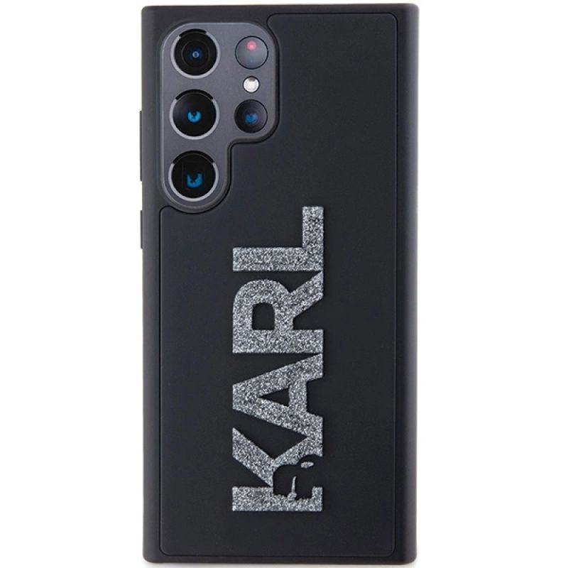 Karl Lagerfeld 3D Rubber Glitter Logo Hülle für Samsung Galaxy S24 Ultra – Schwarz