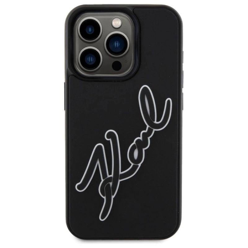 Karl Lagerfeld 3D Rubber Signature Case für iPhone 15 Pro - Schwarz