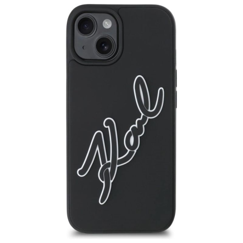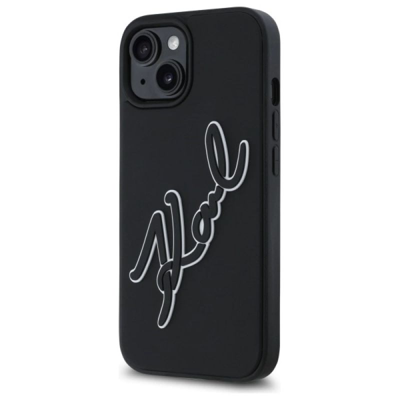 Karl Lagerfeld 3D Rubber Signature iPhone 15 Hülle - Schwarz