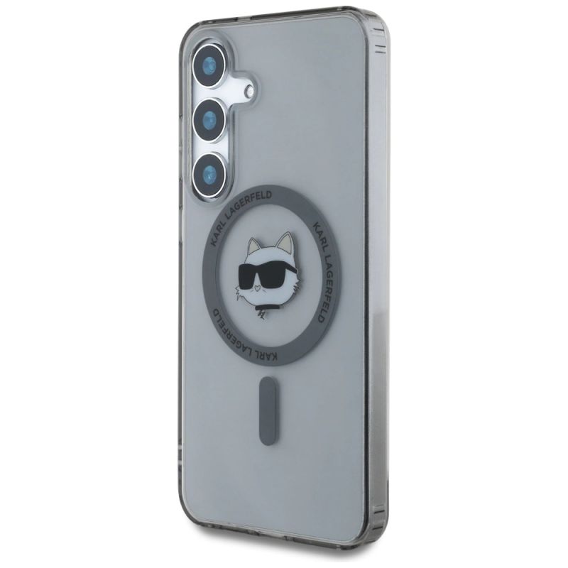Karl Lagerfeld Button Choupette Head gedrucktes Logo MagSafe Samsung Galaxy S25 Hülle schwarz