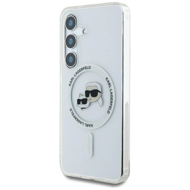 2. Karl Lagerfeld Button Karl & Choupette Heads Gedrucktes Logo MagSafe Samsung Galaxy S25 Hülle weiß