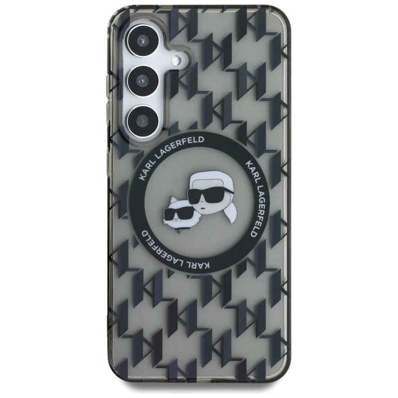 Karl Lagerfeld Button Karl&Choupette Heads On KL Pattern MagSafe Samsung Galaxy S25 Hülle schwarz
