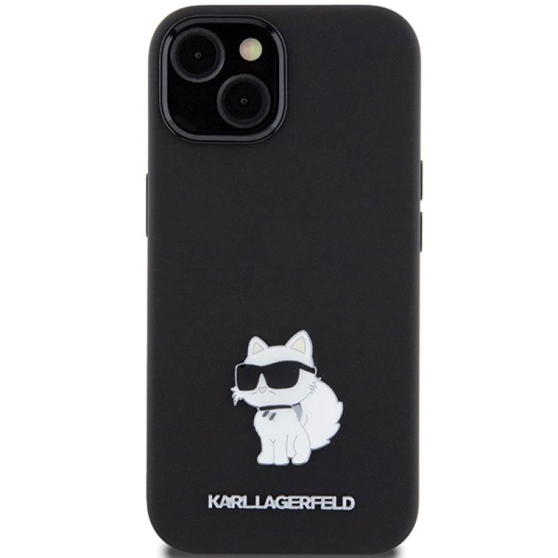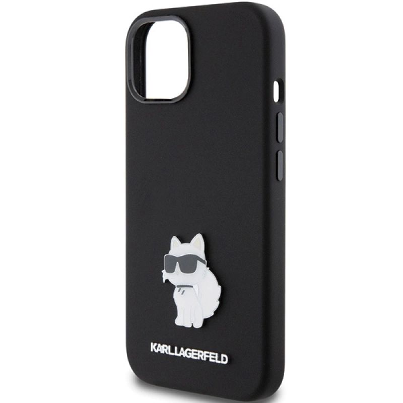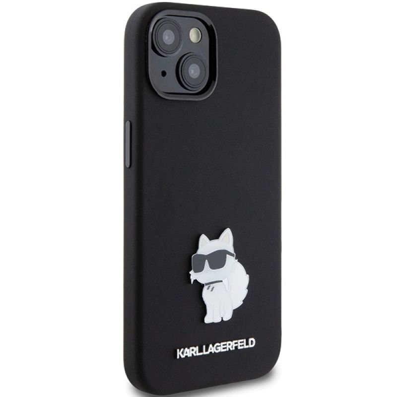 Karl Lagerfeld Choupette Metal Pin-Hülle aus Silikon für iPhone 15 Plus / 14 Plus – Schwarz