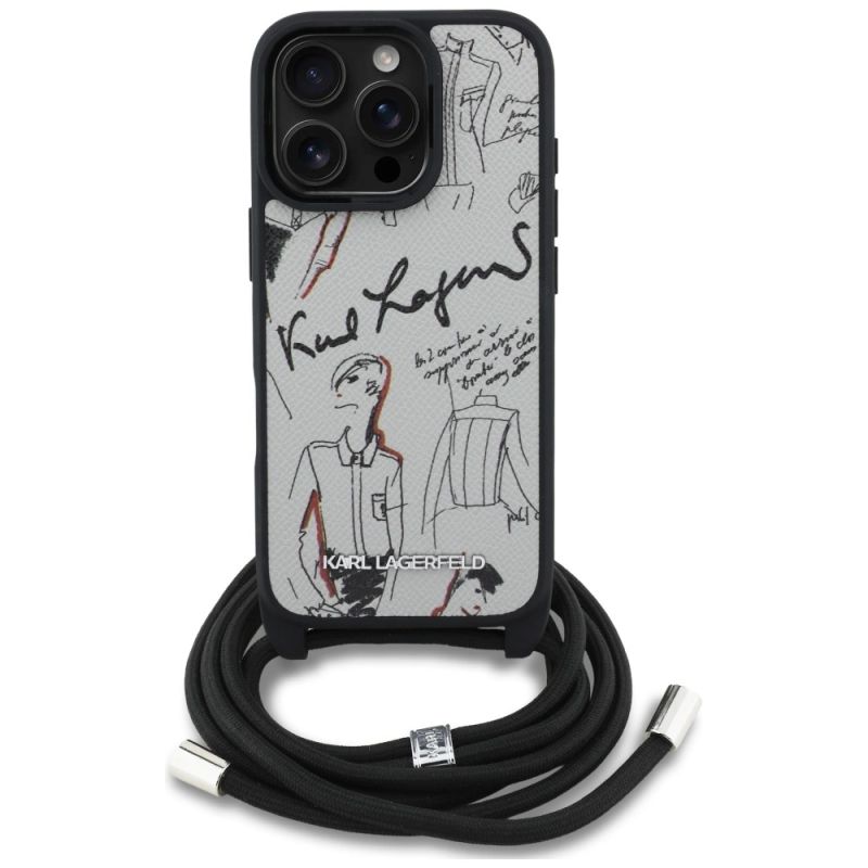 Sammlung Karl Lagerfeld Crossbody mit genarbtem Muster und Logo Typ Hardcase Material TPU / PC / Öko-Leder Farbe Grau Kompatibilität iPhone 16 Pro 6,3"| Name | Details |