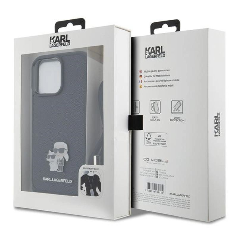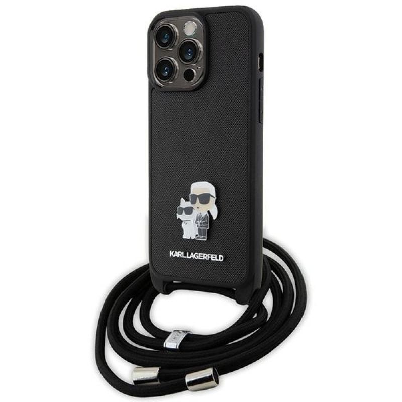 Karl Lagerfeld Crossbody Saffiano Metal Pin Karl & Choupette Hülle für iPhone 15 Pro Max – Schwarz