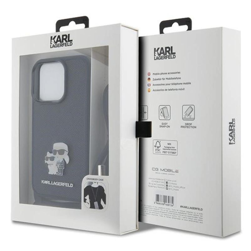 Karl Lagerfeld Crossbody Saffiano Metal Pin Karl & Choupette Hülle für iPhone 15 Pro – Schwarz