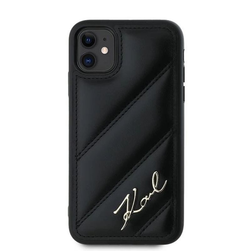 Karl Lagerfeld Diagonal Quilted Script Hülle für iPhone 11 / Xr – Schwarz