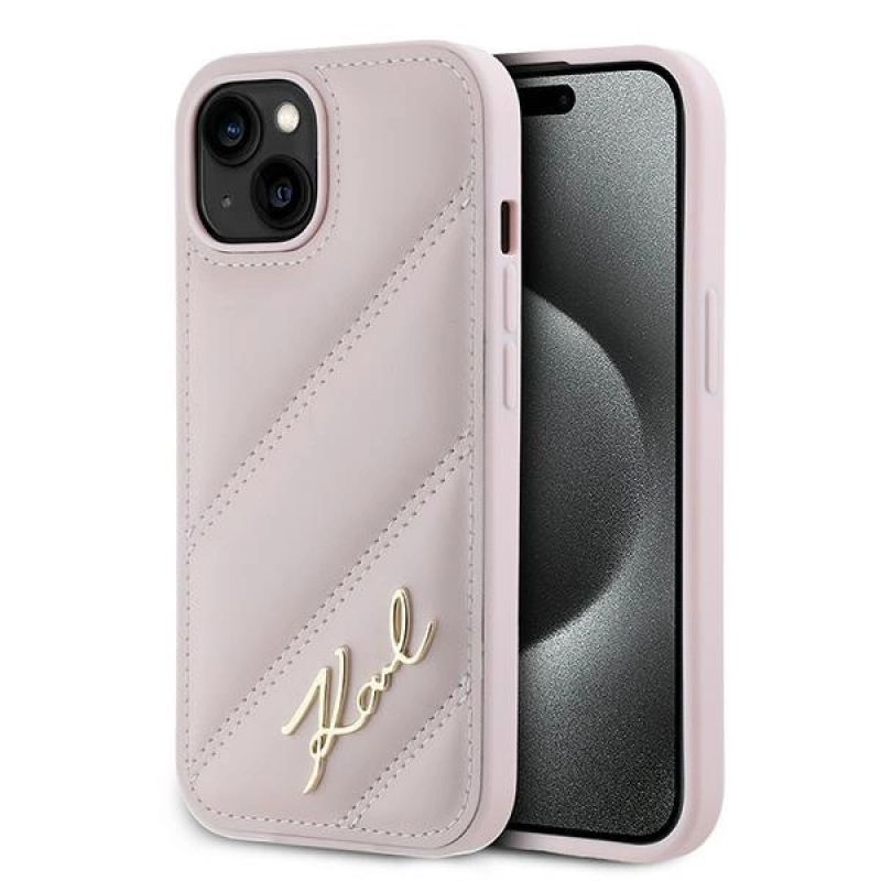 Karl Lagerfeld Diagonal Quilted Script Hülle für iPhone 14 / 15 / 13 – Rosa