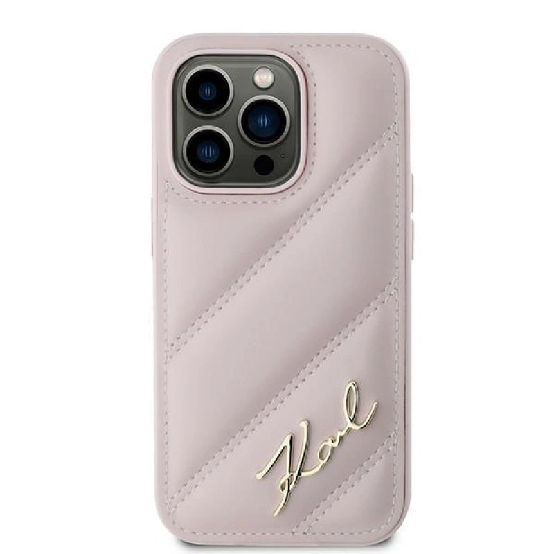 Karl Lagerfeld Diagonal Quilted Script Hülle für iPhone 14 Pro – Rosa