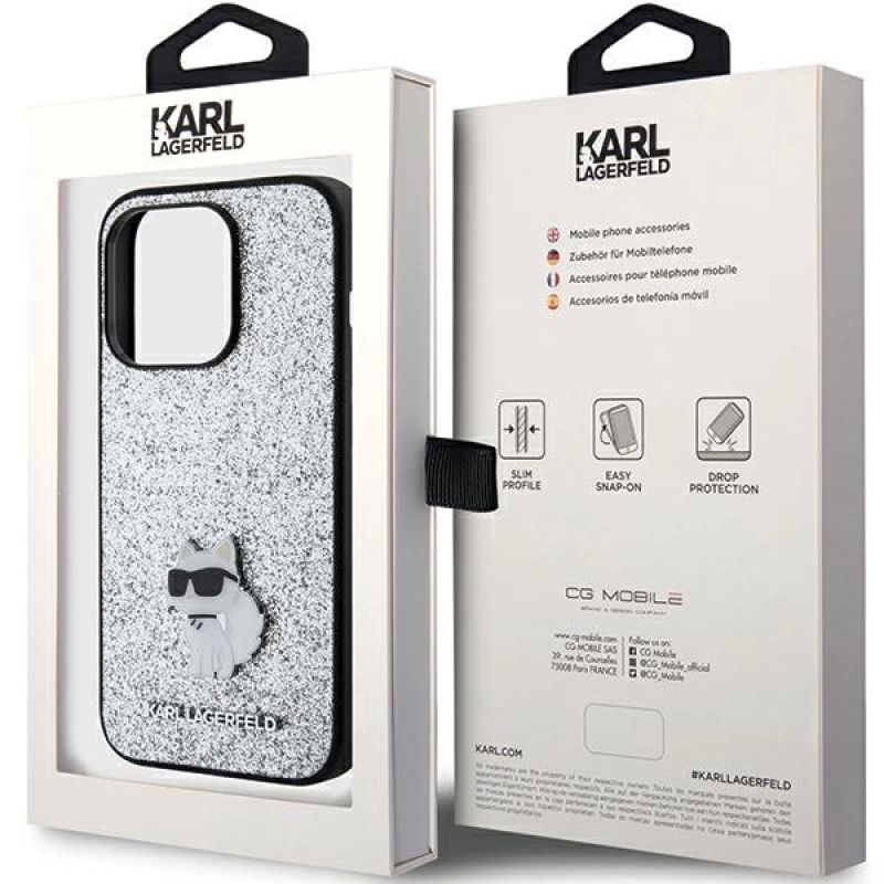 Sammlung Glitzerndes Choupette-Logo aus Metall Typ Hartschalenkoffer Material TPU Farbe Silber Kompatibilität iPhone 15 Pro 6,1"| Name | Details |