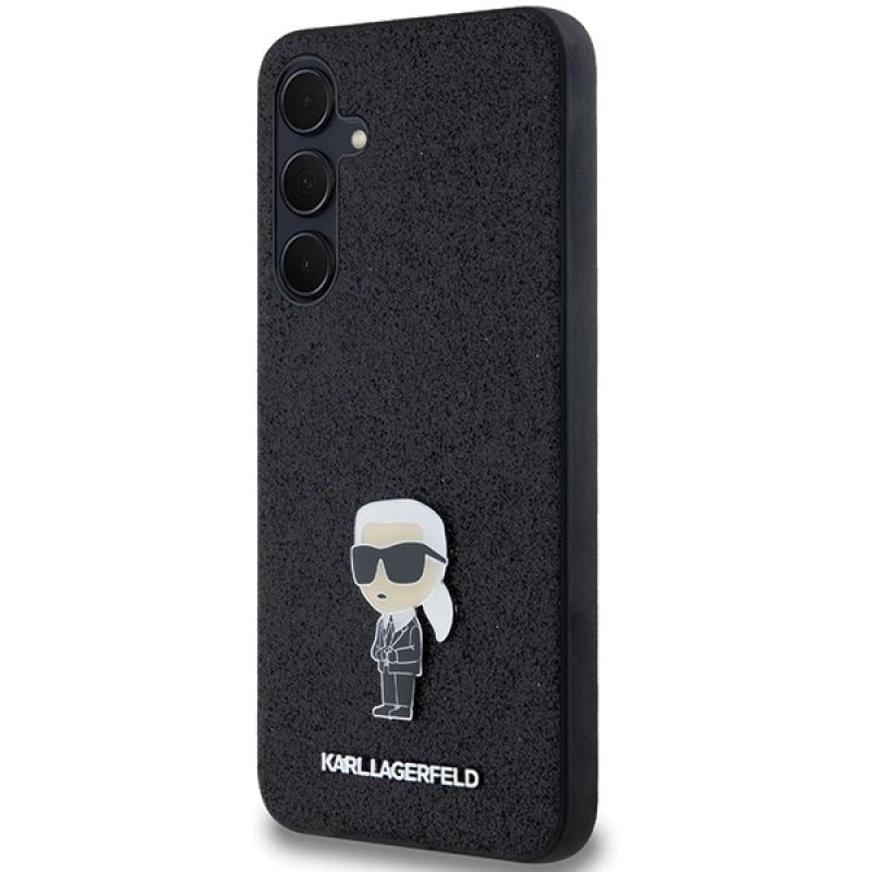 Karl Lagerfeld Fixed Glitter Ikonik Logo Metal Pin Hülle für Samsung Galaxy A55 – Schwarz
