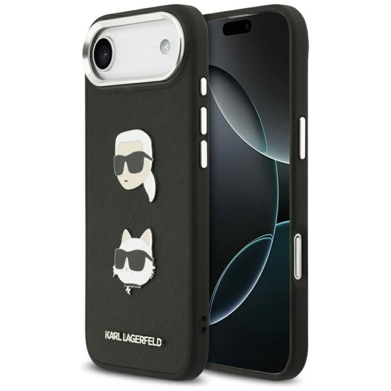 Karl Lagerfeld FW iPhone Air Hülle mit genarbten Karl & Choupette Köpfen, Pins und Logo - Schwarz