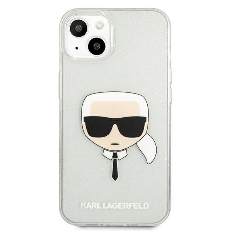 Karl Lagerfeld Glitter Karl's Head Hülle für iPhone 13 mini - Silber
