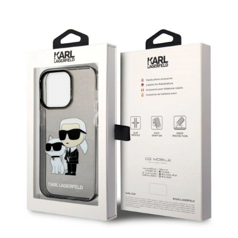 Karl Lagerfeld Glitzer Karl&Choupette Hülle für iPhone 14 Pro – Schwarz