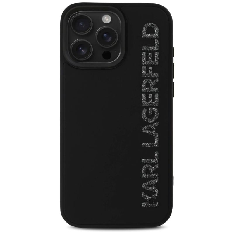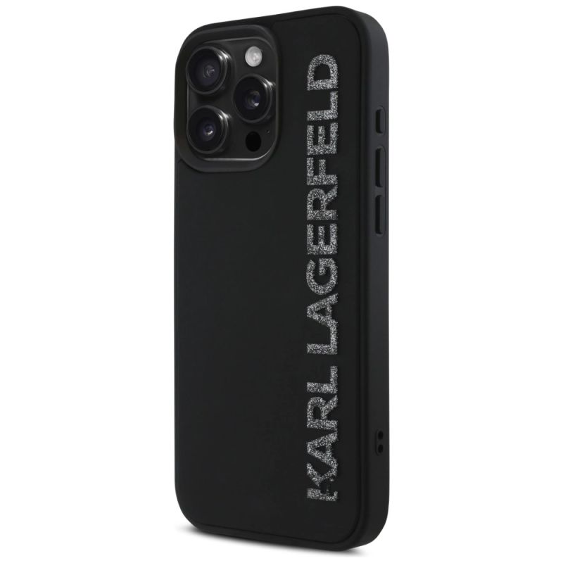 Karl Lagerfeld HC 3D Rubber Elongated Glitter iPhone 16 Pro Hülle - Schwarz