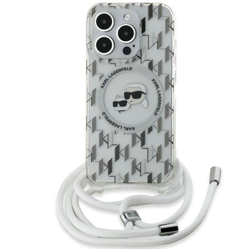 Karl Lagerfeld IML Crossbody Monogram Karl & Choupette Head MagSafe Hülle für iPhone 15 Pro Max – Transparent