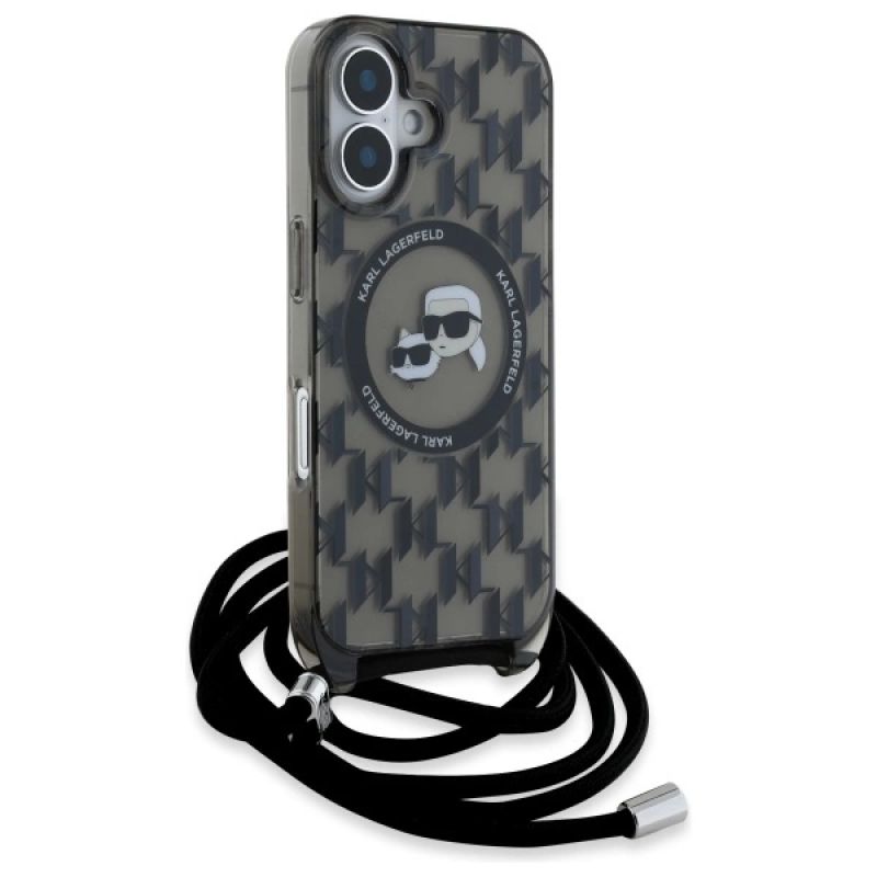 Karl Lagerfeld IML Crossbody Monogram Karl & Choupette Head MagSafe Hülle für iPhone 16 – Schwarz