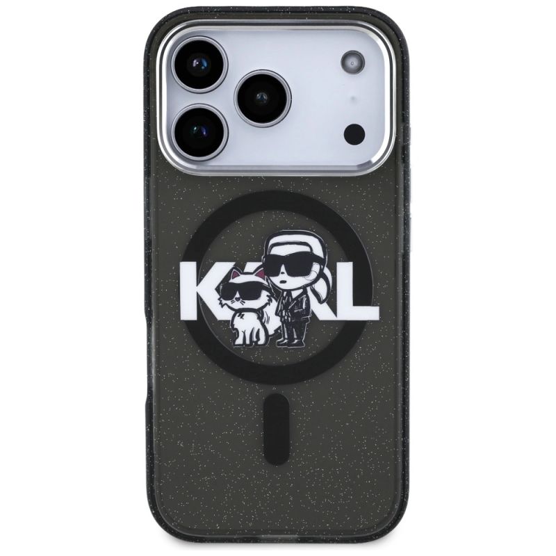 Karl Lagerfeld IML Glitter Karl & Choupette Sketch Logo MagSafe Hülle für iPhone 17 Pro - Schwarz