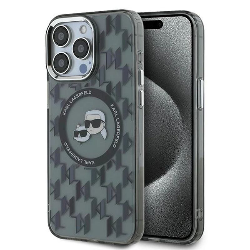 Karl Lagerfeld IML Monogram Karl & Choupette Head MagSafe Hülle für iPhone 15 Pro Max – Schwarz