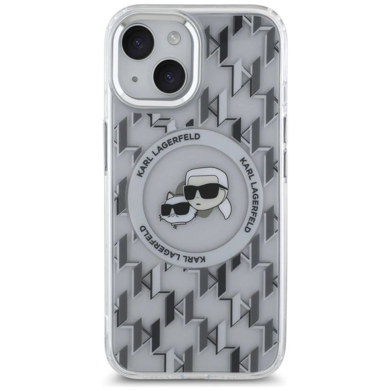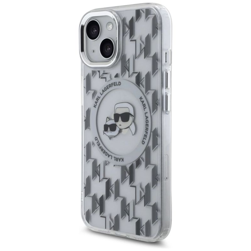 Karl Lagerfeld IML Monogram Karl & Choupette Head MagSafe-Hülle für iPhone 15 – transparent