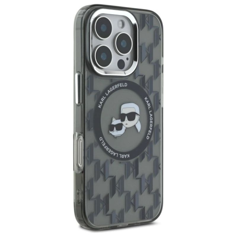 Karl Lagerfeld IML Monogram Karl & Choupette Head MagSafe Hülle für iPhone 16 Pro – Schwarz