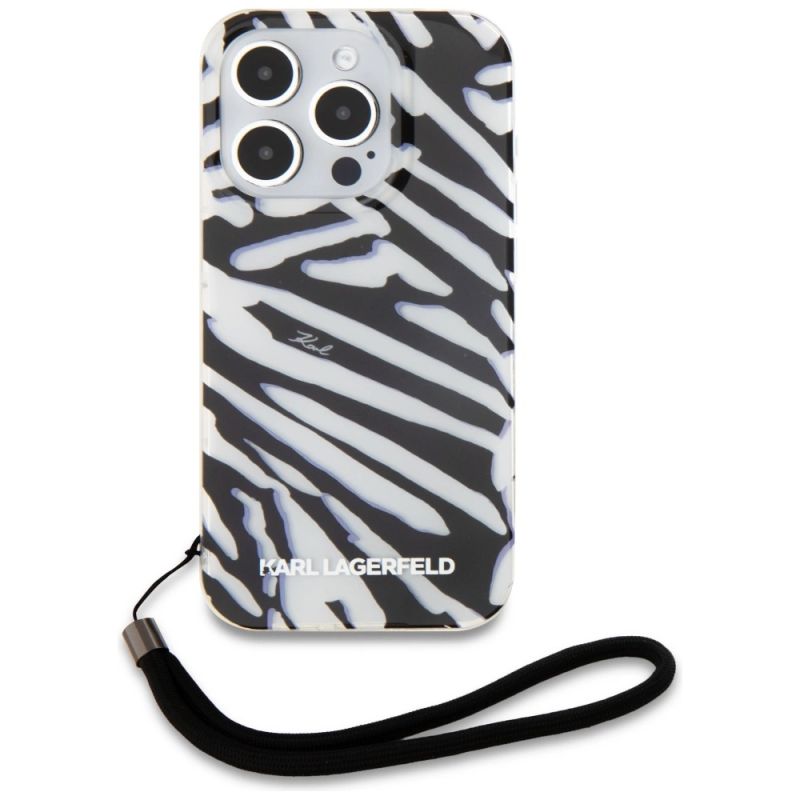 Karl Lagerfeld IML Zebra Pattern & Cord Hülle für iPhone 15 Pro Max – Schwarz