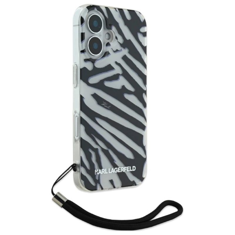 Karl Lagerfeld IML Zebra Pattern & Cord Hülle für iPhone 16 – Schwarz