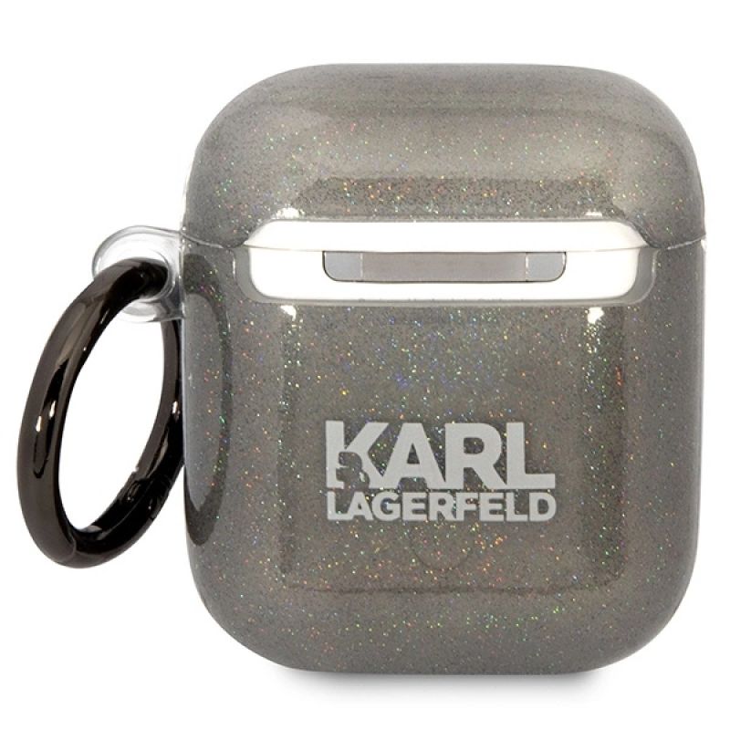 Karl Lagerfeld KLA2HNKCTGK Airpods 1/2 Hülle schwarz/schwarz Gliter Karl&Choupette