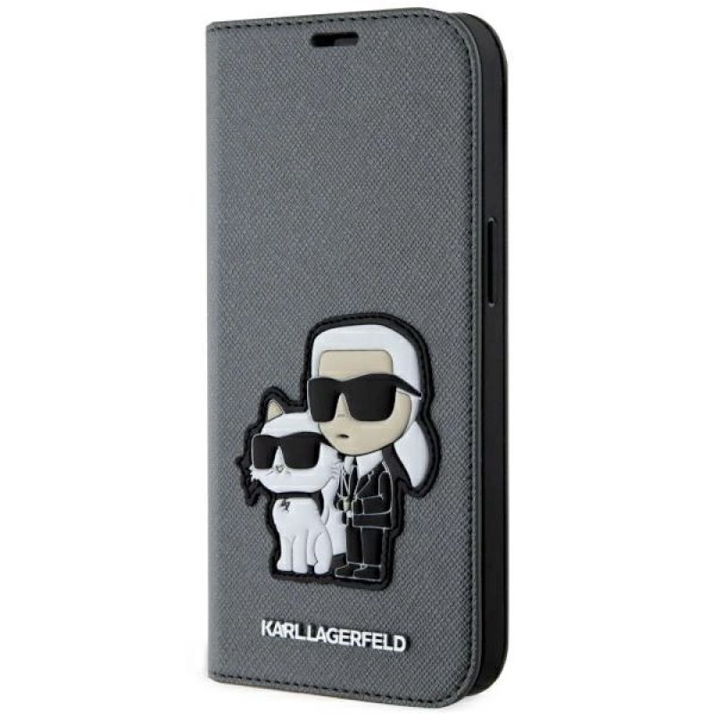 Karl Lagerfeld KLBKP14SSANKCPG iPhone 14 6.1" Bücherregal Silber/Silber Saffiano Karl & Choupette