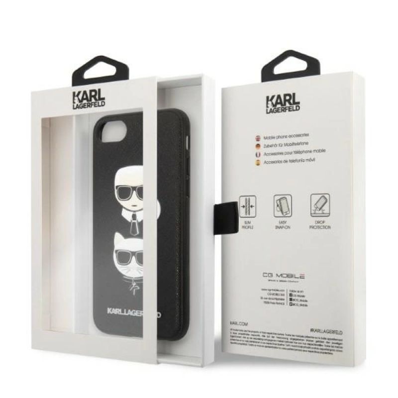 Karl Lagerfeld KLHCI8SAKICKCBK iPhone 7/8 / SE 2020 / SE 2022 schwarz/schwarz Hardcase Saffiano Karl&Choupette Head