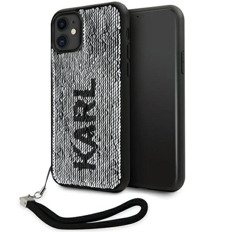Karl Lagerfeld KLHCN61PSQRKS iPhone 11 / Xr 6,1" Silber/Silber Hardcase Pailletten Kordel