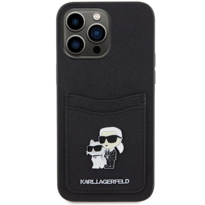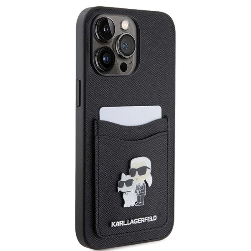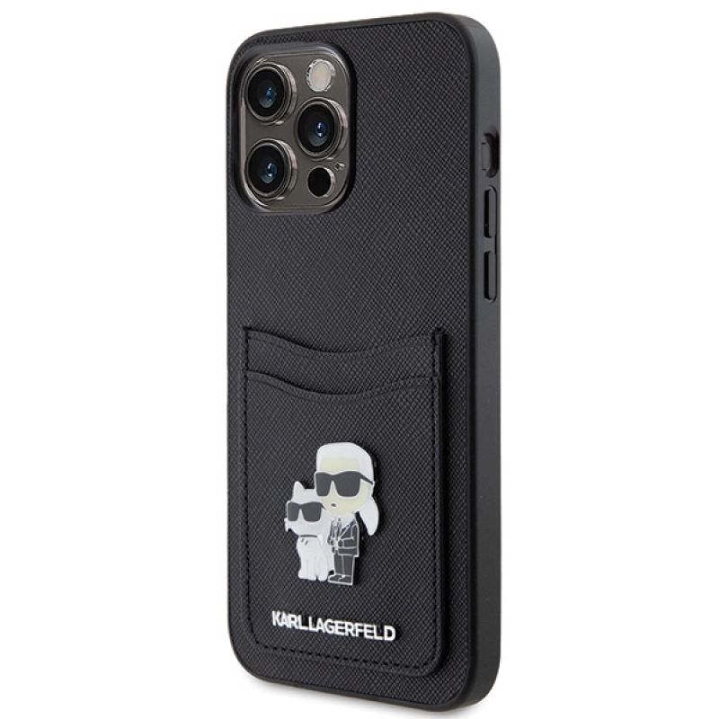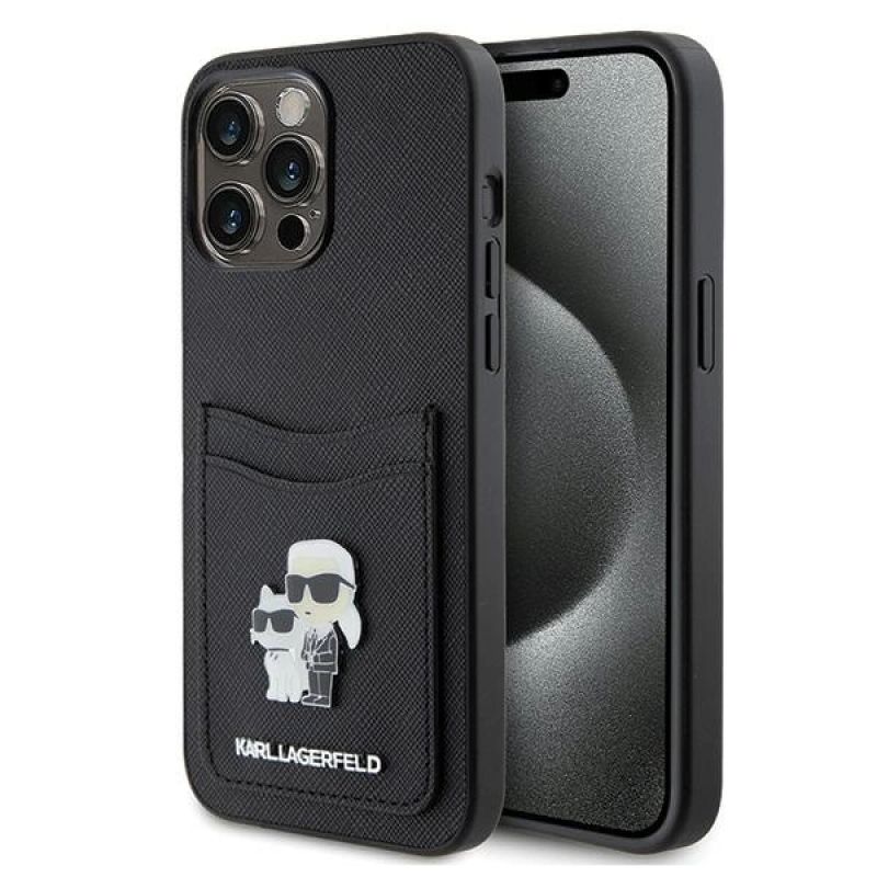 Karl Lagerfeld KLHCP15XSAPKCNPK iPhone 15 Pro Max 6,7" schwarz/schwarzes Hardcase Saffiano Cardslot KC Metal Pin
