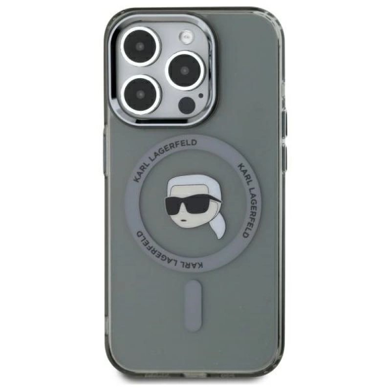 Karl Lagerfeld KLHMP15XHLSKIK iPhone 15 Pro Max 6,7" schwarz/schwarz Hardcase IML Metal Karl Head MagSafe