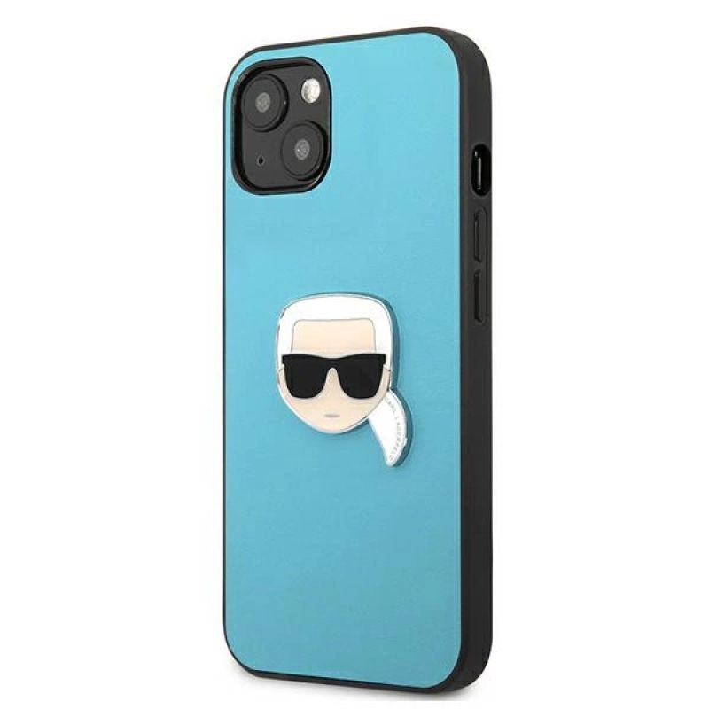 Karl Lagerfeld Leder Ikonik Karl's Head Metallhülle für iPhone 13 mini - Blau