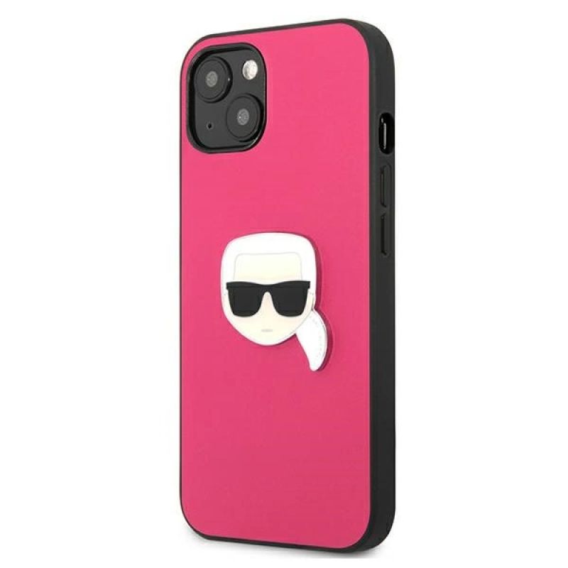 Karl Lagerfeld Leder Ikonik Karl's Head Metallhülle für iPhone 13 mini - Rosa