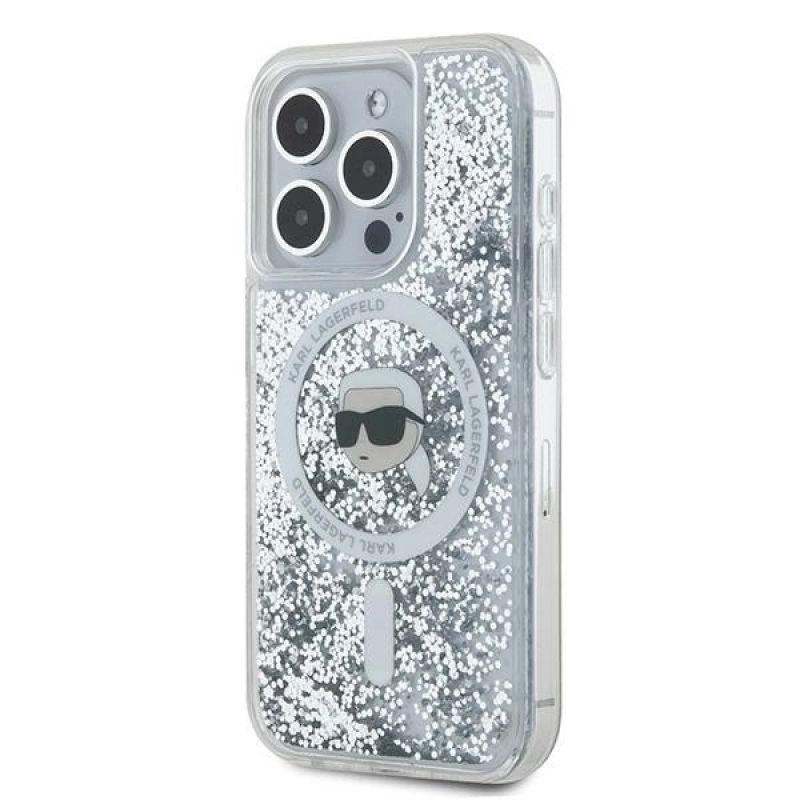 Karl Lagerfeld Liquid Glitter Karl Head MagSafe Hülle für iPhone 15 Pro – transparent